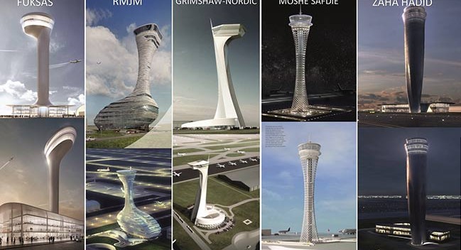 İstanbul Yeni Havalimanı’nın Hava Trafik Kontrol Kulesi için; Zaha Hadid semazen dönüşlerinden, Moshe Safdie Osmanlı geometrik desenlerinden, Massimiliano Fuksas minarelerden, Pininfarina-Aekom lale çiçeği formundan, RMJM Architects İstanbul’un martılarından esinlenirken Grimsaw-Nordic ise terminal binası ve genel havaalanı tasarımıyla bütünlük sağlayacak bir konsept ile hazırladıkları tasarımları paylaştı.
